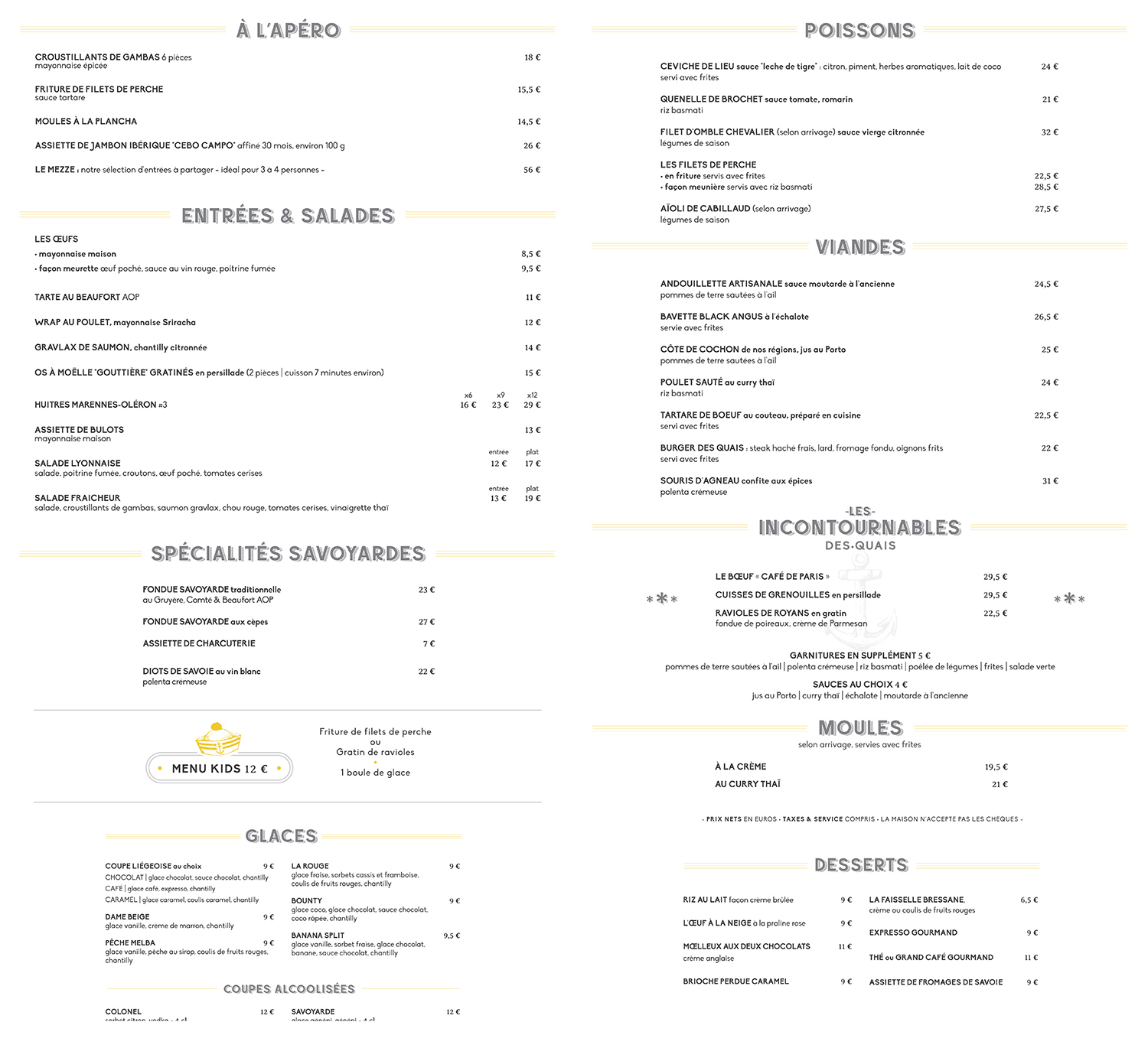 A la Brasserie Les Quais, nous vous proposons des plats indémodables et de qualité, cuisinés avec des produits frais et de saison.